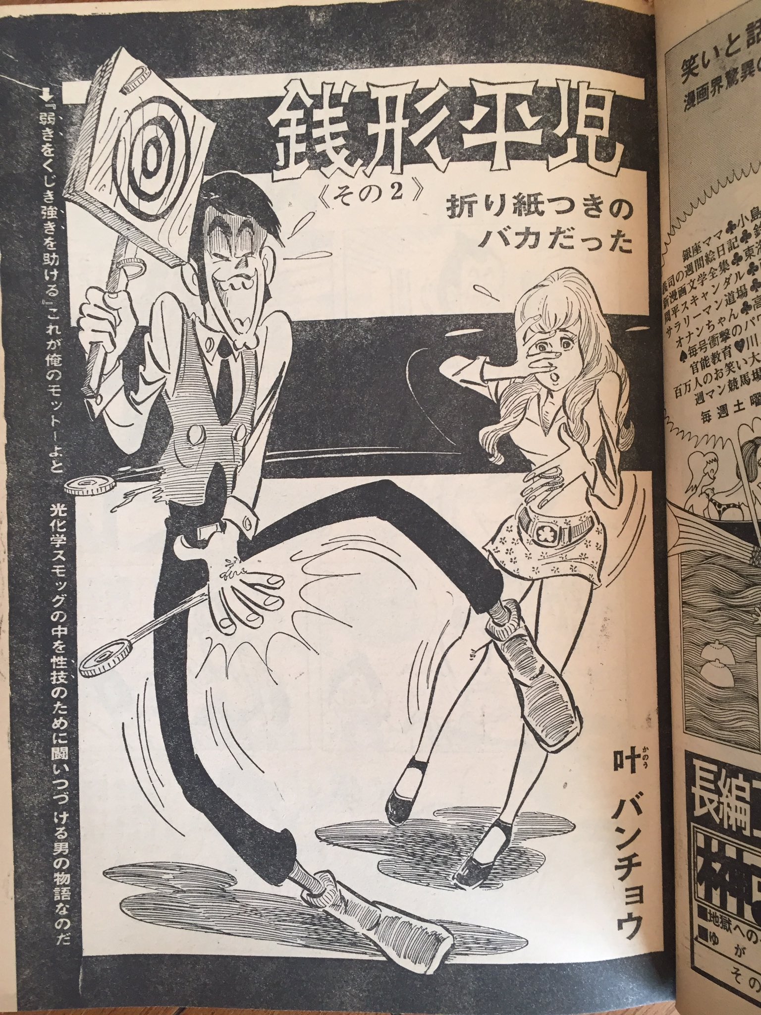 クドー on twitter モンキー パンチ先生の画風パクリ物でひそかに有名な叶バンチョウさんですが こんなん出てきました 銭形平児て 週刊漫画times増刊 昭和46年8月 なんか叶さんサインもモンキー パンチ先生意識し
