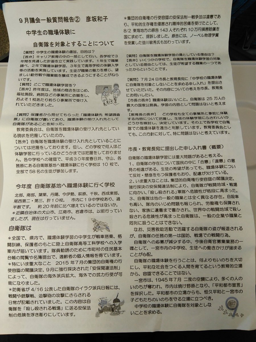 一宮市教 自衛隊を人殺しと非難 togetter