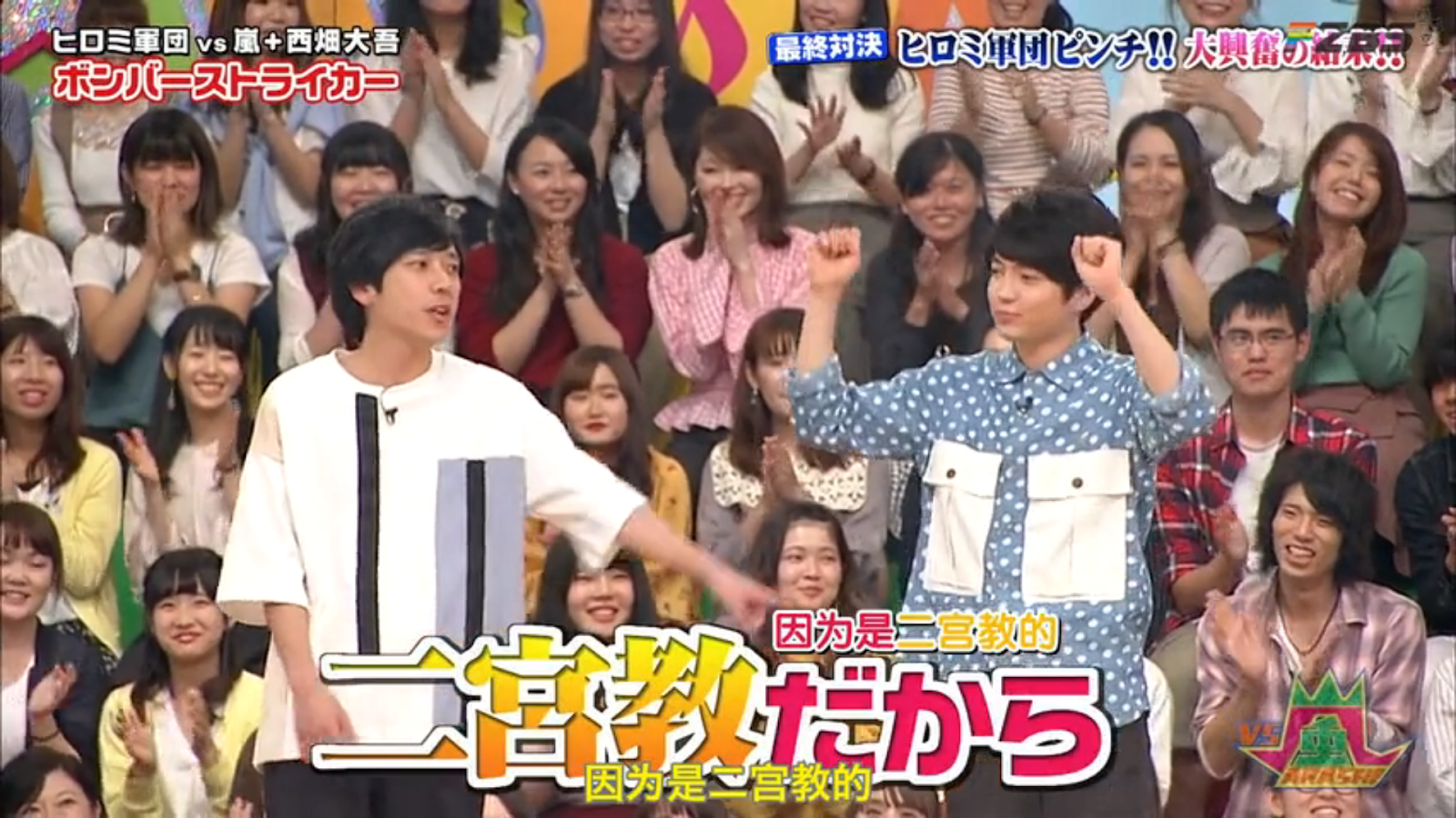 nami na twitteru 二宮 西畑の共演がやっと地上波で キラキラ信者と終始嬉しそうな教祖様 これからはこれが二宮教のポーズですね 二宮教 西畑大吾 二宮和也