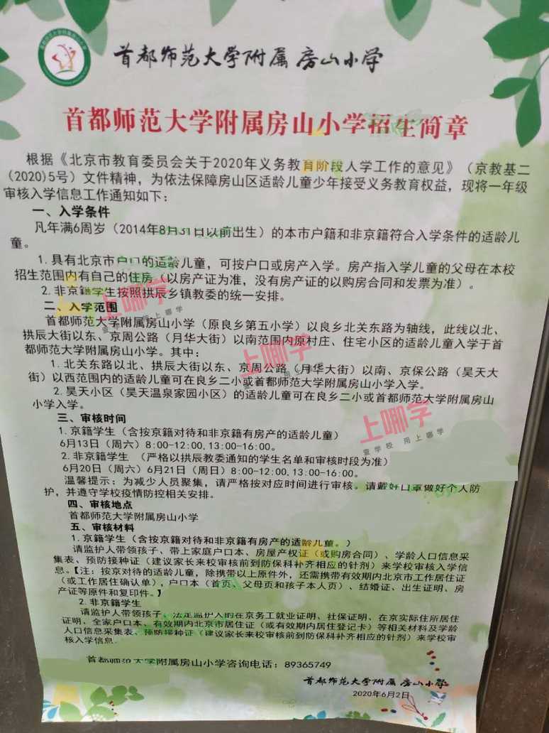 北京师范大学附属中学京西分校小学部 幼升小招生简章 划片小区入学政策 升学方式 对口中学 学区房划片