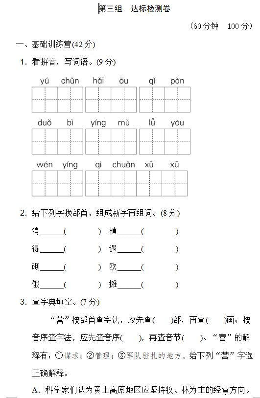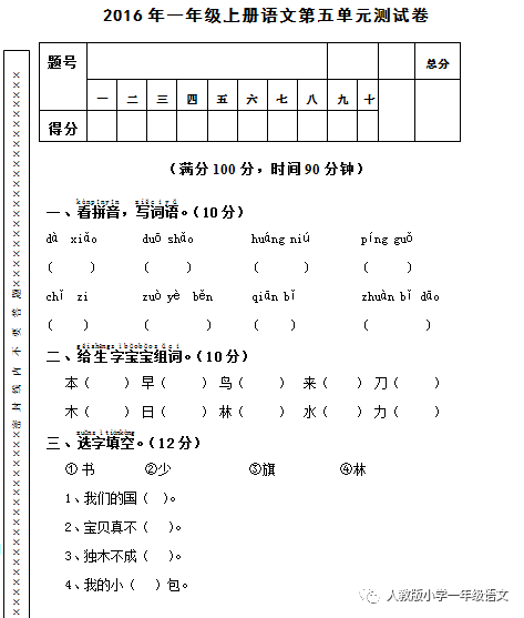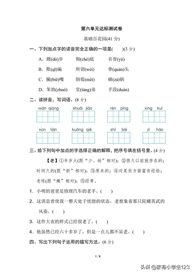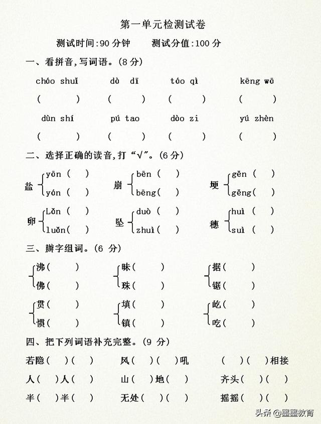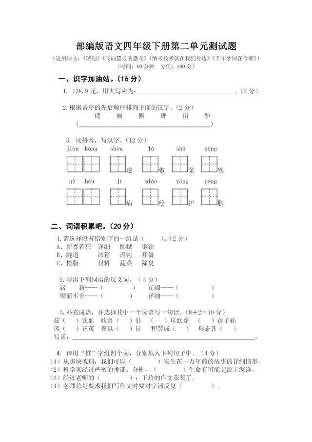 四年级下册语文卷子题 搜狗图片搜索
