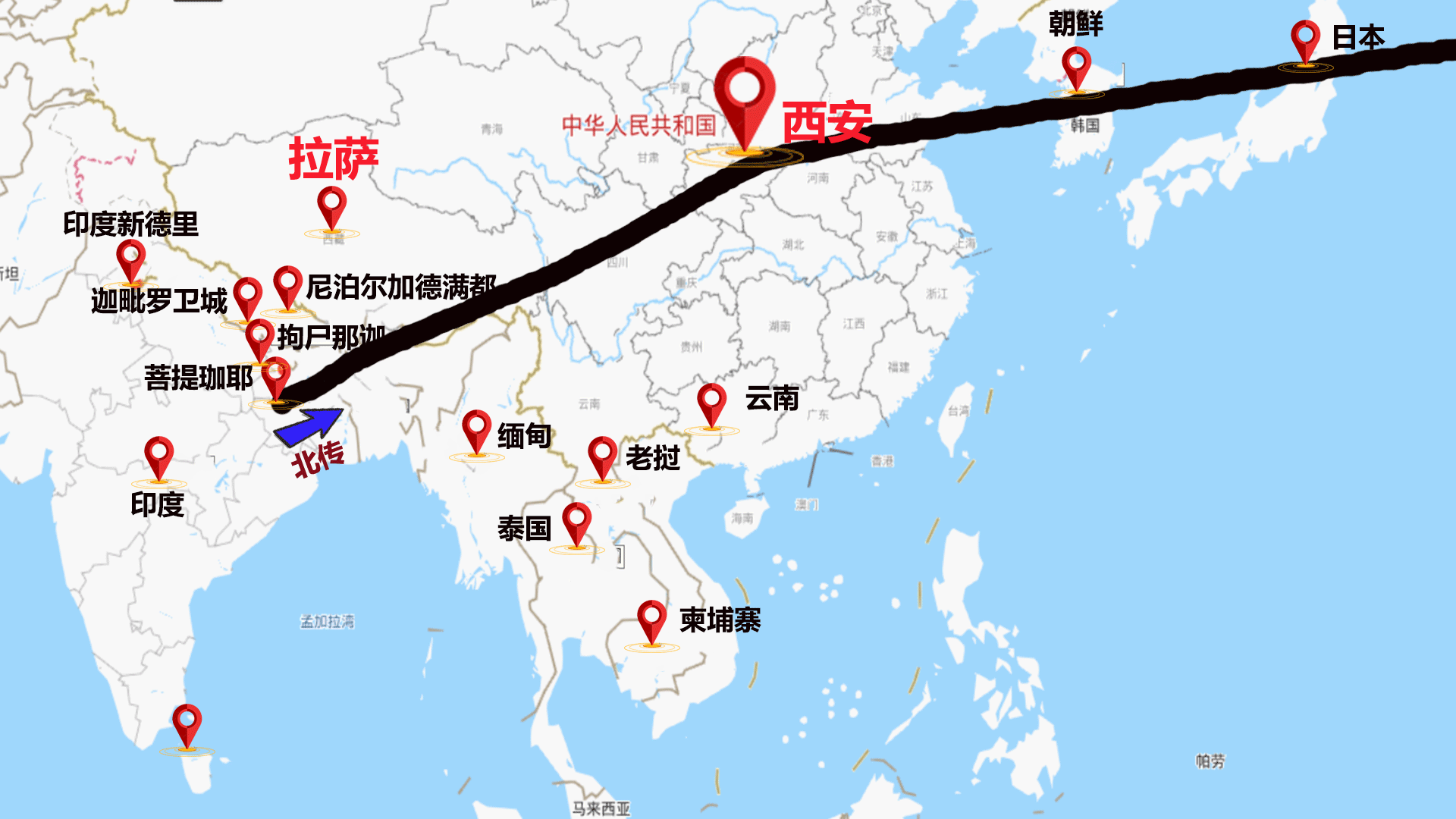 佛教传播路线地图 佛教分布图 哔哩哔哩 bilibili