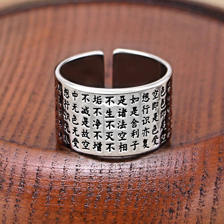 罗泰老银匠莲花心经戒指女男士宽版指环潮男个性单身999足银佛戒16号 内周长56mm 图片价格品牌报价 京东