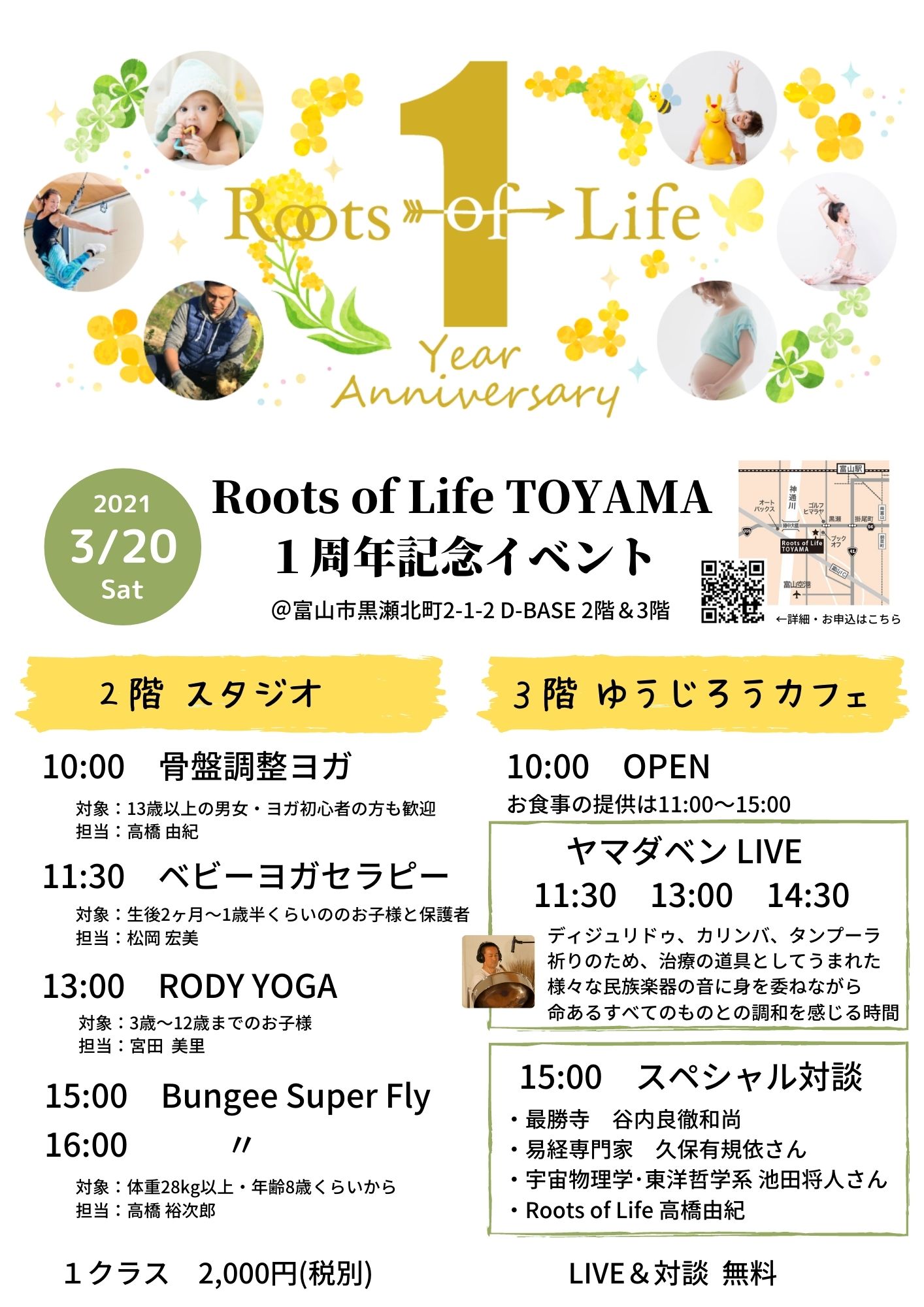 roots of life toyama 1周年記念イベント 骨盤調整ヨガ ベビーヨガセラピー ロディヨガ bungee super fly