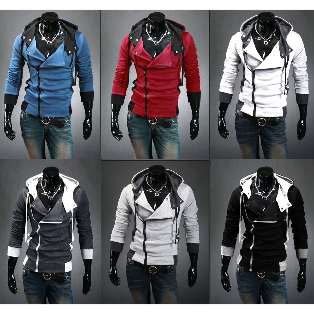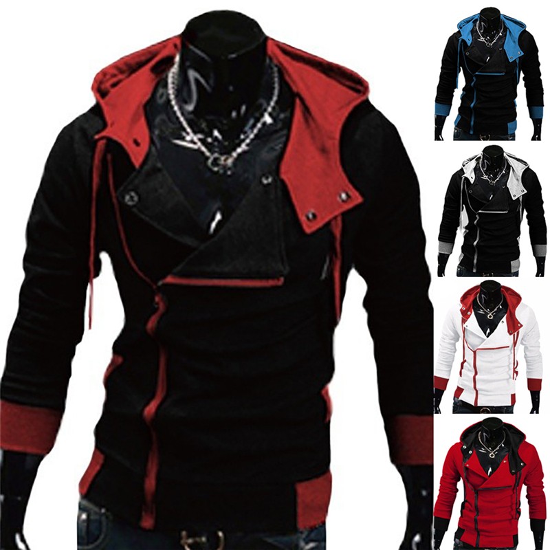 實拍影片 連帽斜拉鏈外套 大尺碼 刺客教條 韓版 男生 修身 顯瘦 英倫 連帽 外套 秋冬 m33