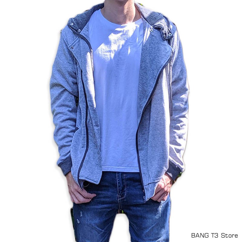 大尺碼 刺客教條 立領斜拉鍊修身刷毛棉質連帽外套 tgw09