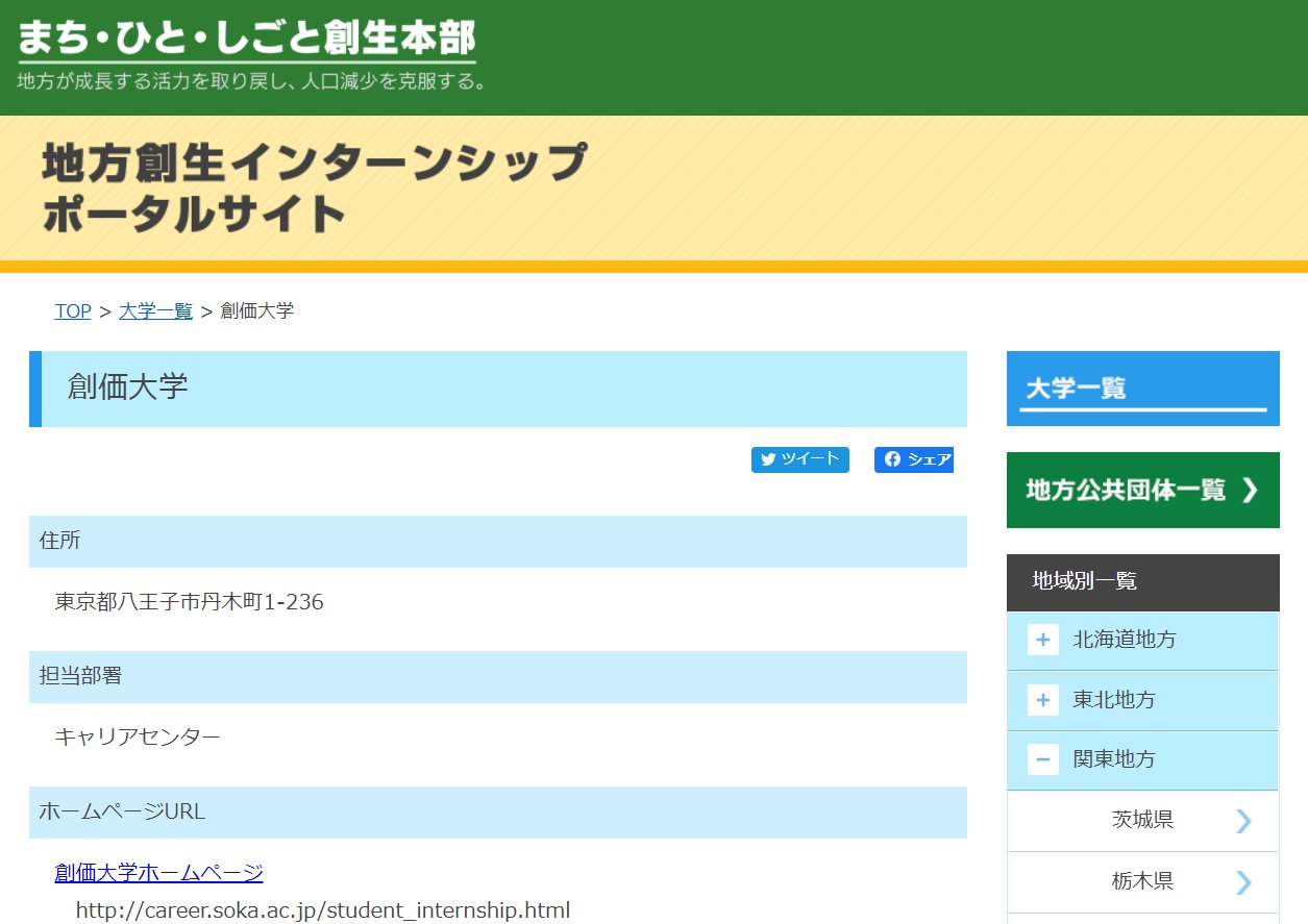 ポータル サイト 創価 大学 私立大学 大学一覧 地方創生インターンシップポータルサイト