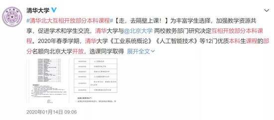 清华北大互选课 来了