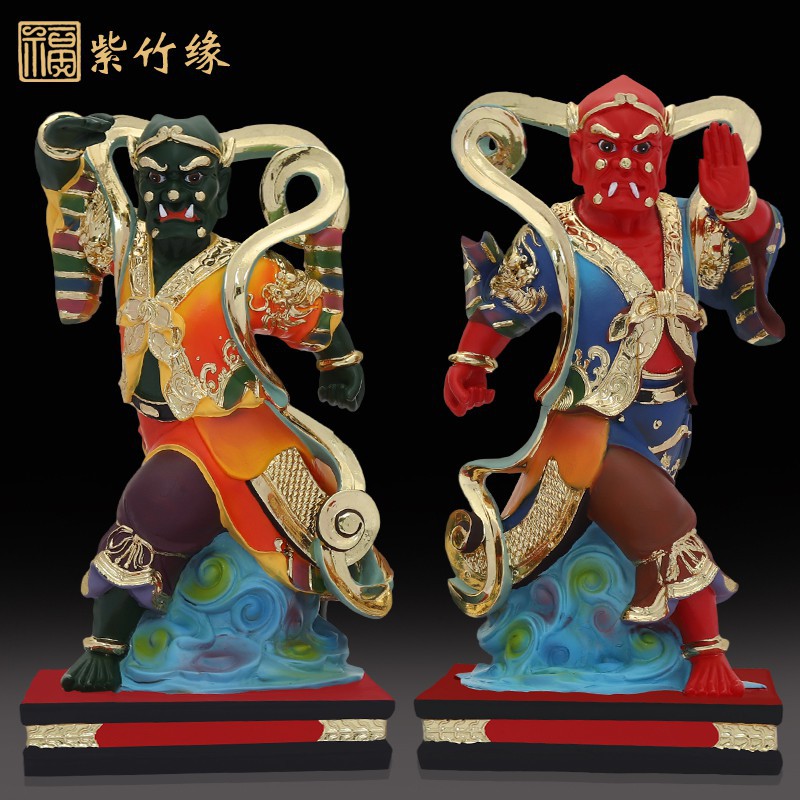 佛祠堂 8寸千里眼順風耳敦煌彩媽祖左右護法道教神像家居擺件