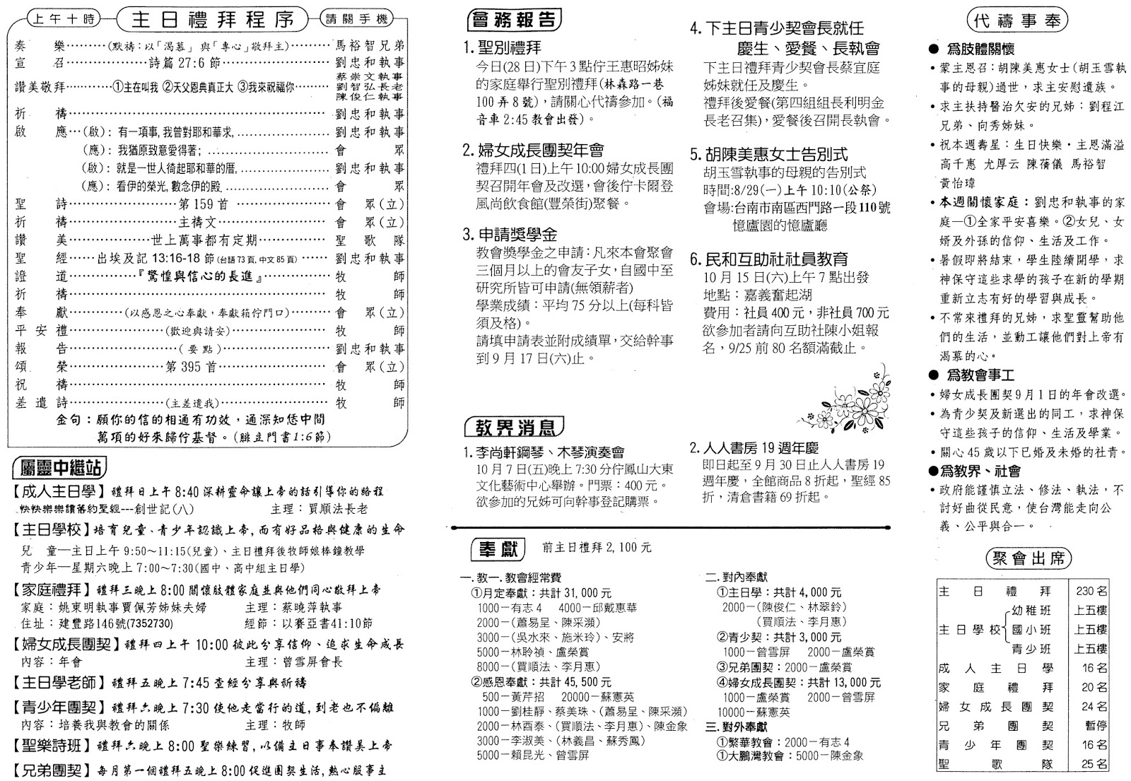 目錄程序表堂慶感恩崇拜暨按立執事典禮06 發刊詞創始成終掌管歷史的神何鏡煒08 會牧的話堂慶感言梁明財10 事奉團隊教會傳道同工及居港執事近照