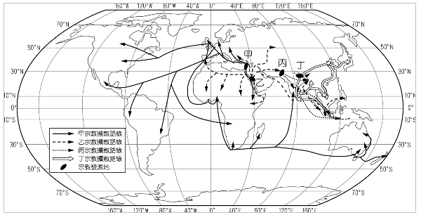 重新載圖 圖為世界四種宗教的發源地及其擴散路線圖 請問 題組 26 2010 阿摩線上測驗