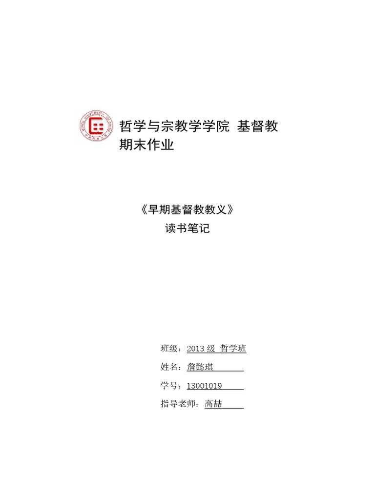 早期基督教教义读书笔记