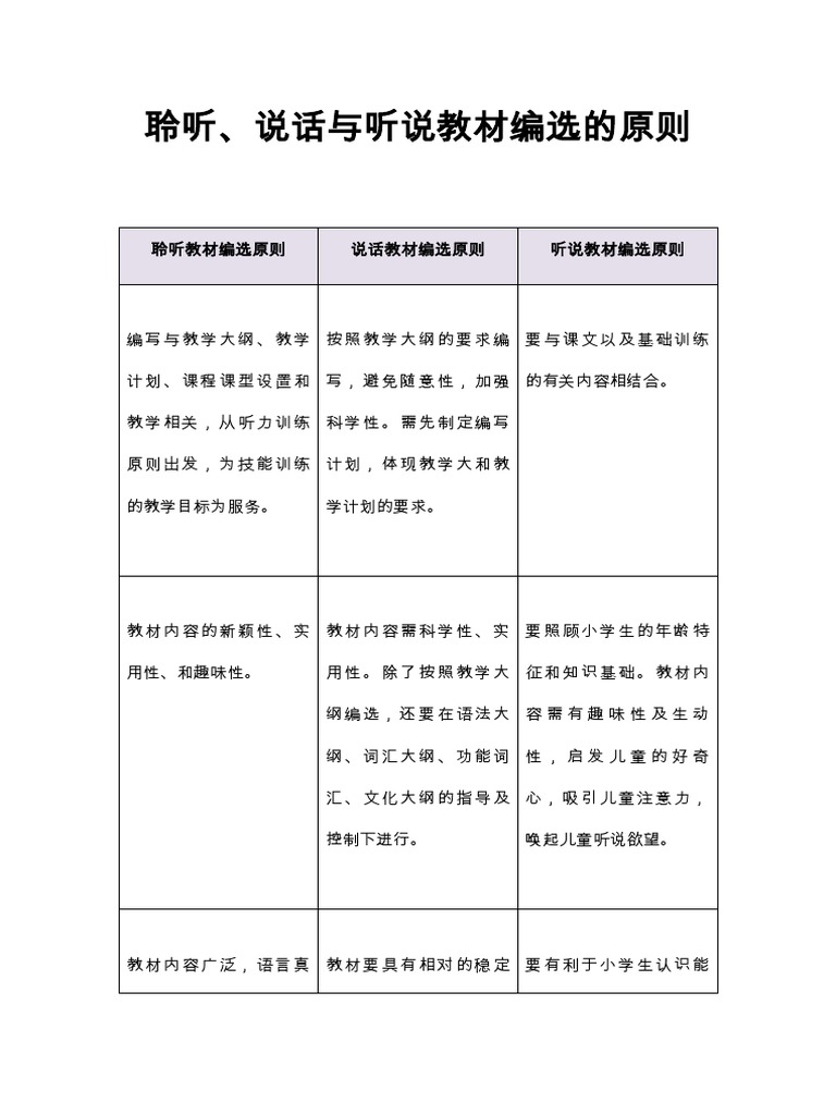 聆听 说话与听说教材编选的原则