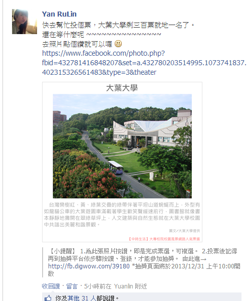 大葉人新聞網 大葉大學逆轉勝 全校師生校友職員展現驚人團結力 最後三小時衝出1000票勇奪全國校景人氣票選第一名 演出精彩逆轉勝傳奇之夜