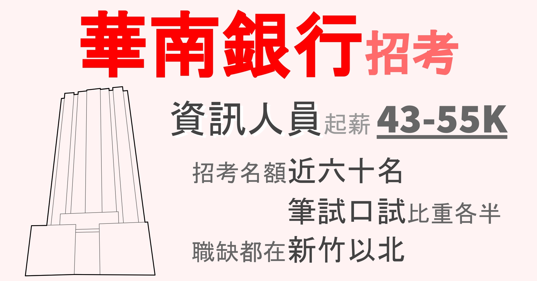 華南銀行招考資訊人員 2021 110年最新華銀招考簡章資訊 起薪43k 55k 資訊員名額59名 口試與筆試比重各半 新竹以北皆有職缺 考試時程 考試 科目 考試資格 薪資福利 工作內容 需用人數 tkb我是資訊人