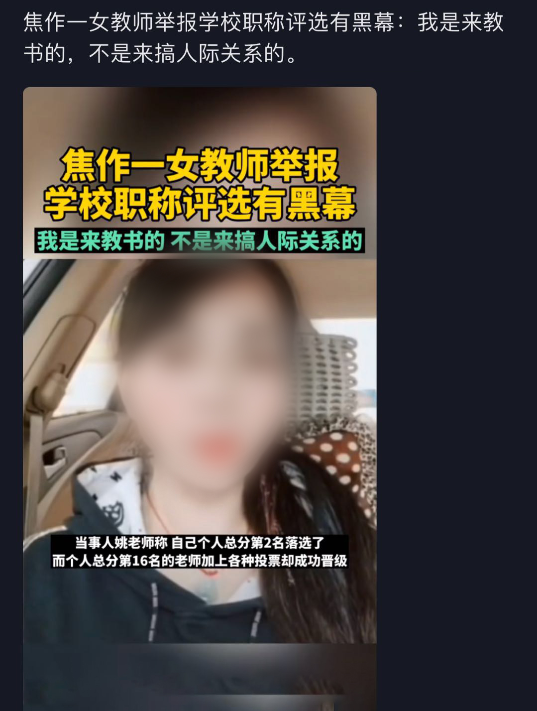 焦作女教师反映评职称不公 教育局回应为何排名第二投票被淘汰 女士 山阳区 教育局 新浪新闻