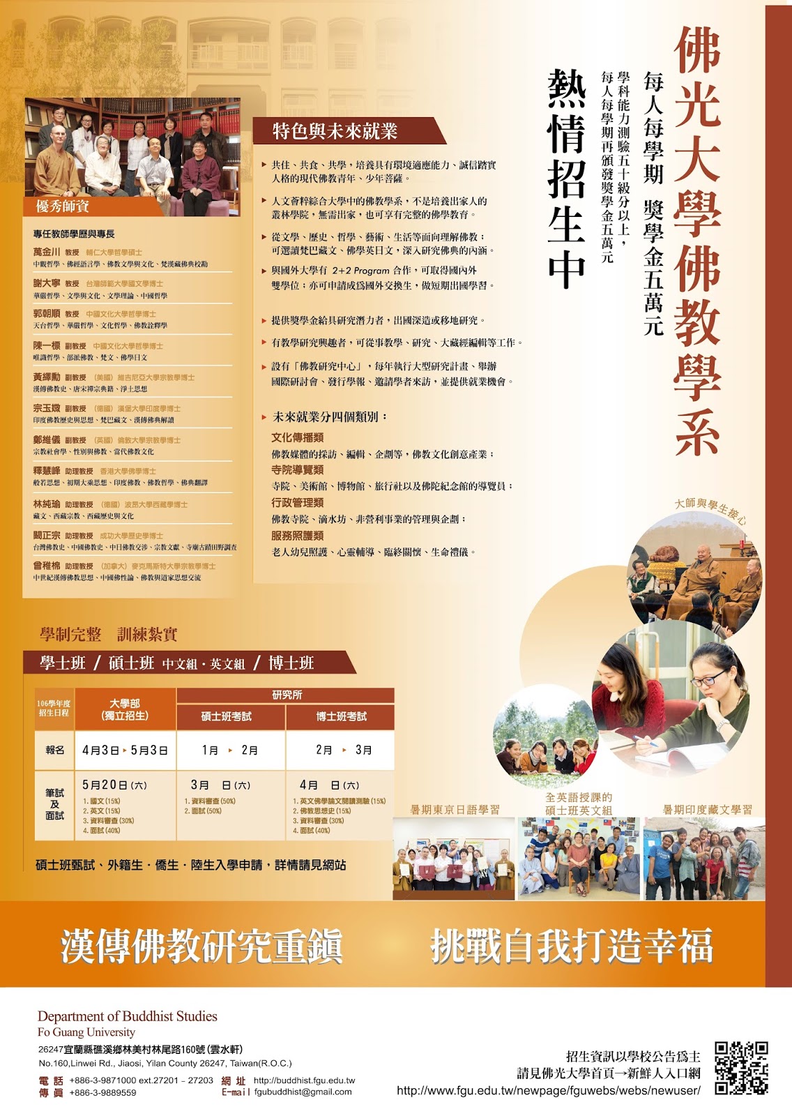 招生資訊 佛光大學佛教學院 佛教學系