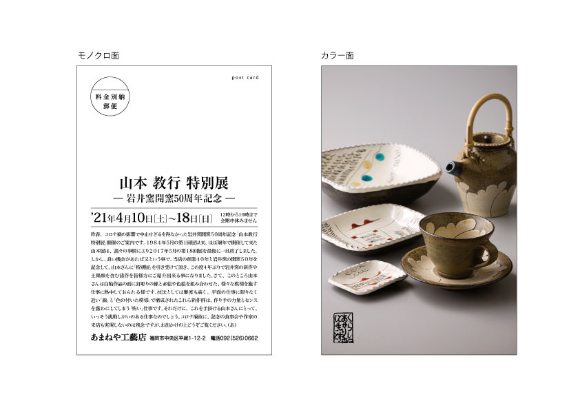 あまねや通信 岩井窯開窯五十周年記念 山本教行特別展 のお知らせ