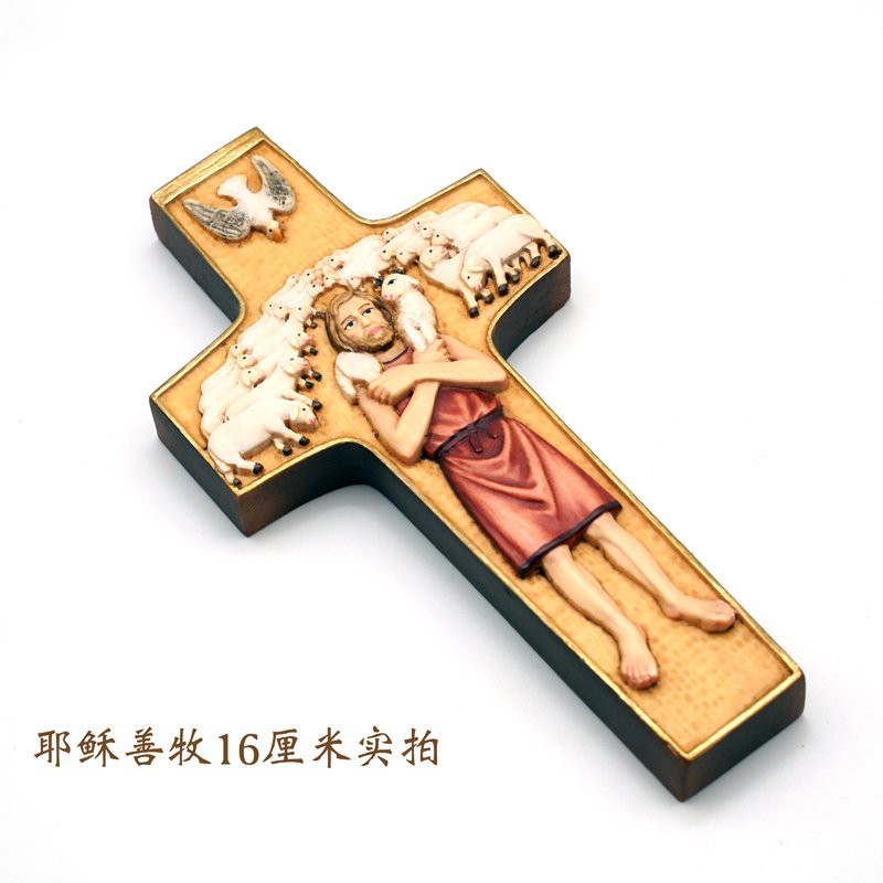 耶穌善牧木質十字架木雕圣像教宗皇方濟各天主教圣物意卡米諾進口潮人街 yahoo奇摩拍賣