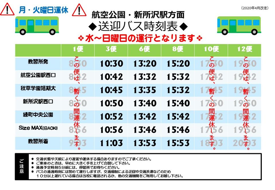 バス時刻表 ルート 指定 北本中央自動車学校 埼玉県北本市の自動車学校
