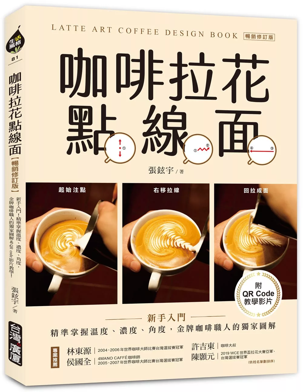 咖啡拉花點線面 新手入門 精準掌握溫度 濃度 角度 金牌咖啡職人的獨家圖解 qr code教學影片 暢銷修訂版