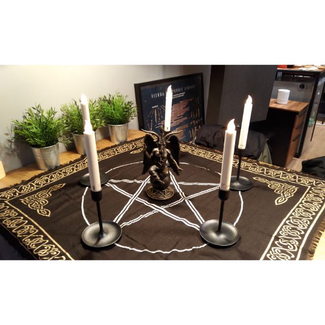 撒旦教 朝聖套組 包含撒旦像x1 白色電子蠟燭與燭台x5 五芒星桌墊x1