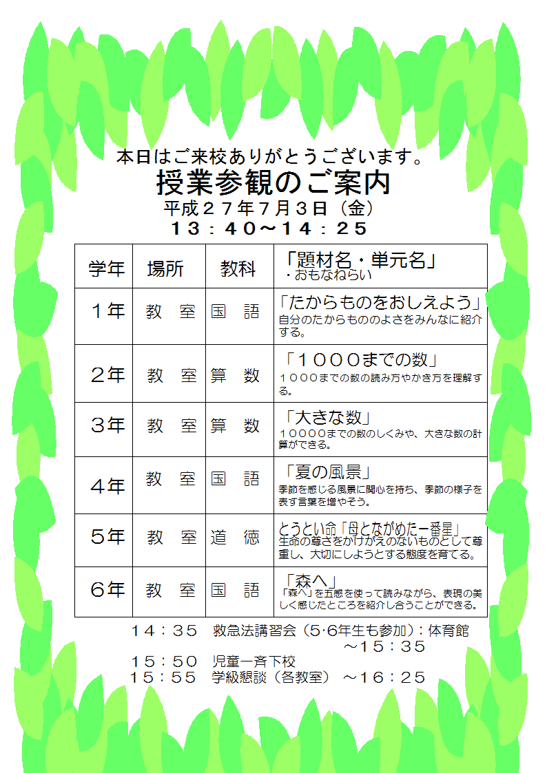 授業参観のお知らせ 新見市立上市小学校
