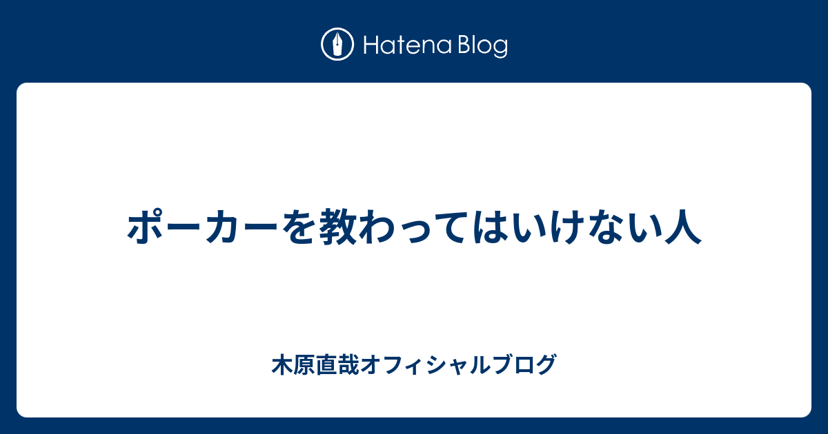 ポーカーを教わってはいけない人 木原直哉オフィシャルブログ