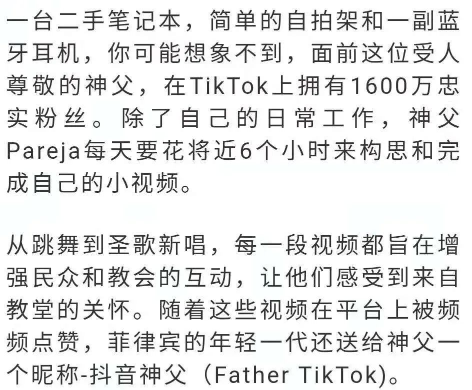 拥有1600万粉丝的菲律宾抖音神父 tiktok也是神圣的讲坛 自由微信 freewechat
