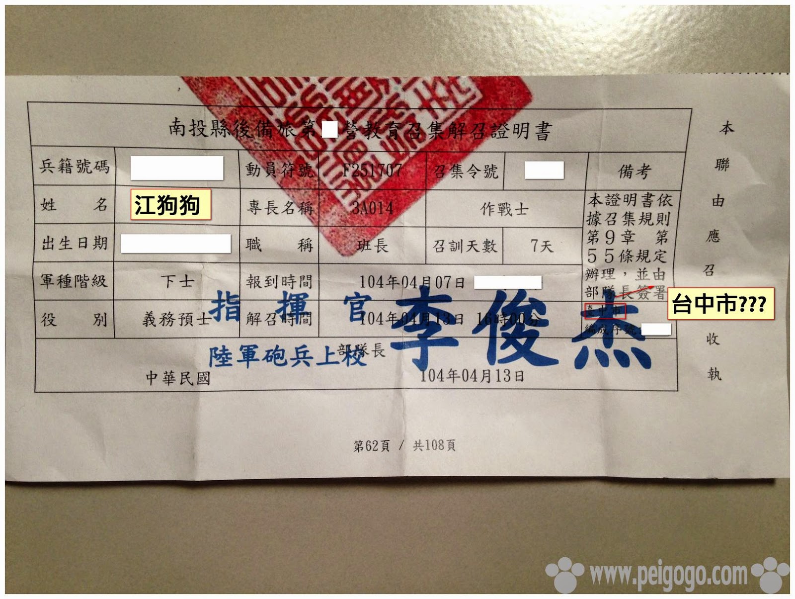 peigogo 生活 成功嶺教育召集 教召 我登入國軍online