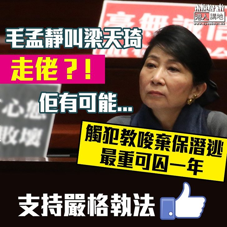 目無法紀 毛孟靜叫梁天琦走佬 有可能 觸犯教唆棄保潛逃 港人花生 港人講地