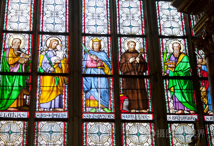 圣安东尼教堂彩色玻璃窗编辑类库存照片 图片包括有蓝色 框架 响铃 比利时 克罗地亚人 旅馆 166345123