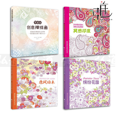 全套4册零基础创意禅绕画 冥想印度 唐风日本 缤纷花园心境禅绕画练习瑜伽涂鸦彩铅手绘减压涂色本填色书教成人绘画书籍花园 虎窝淘