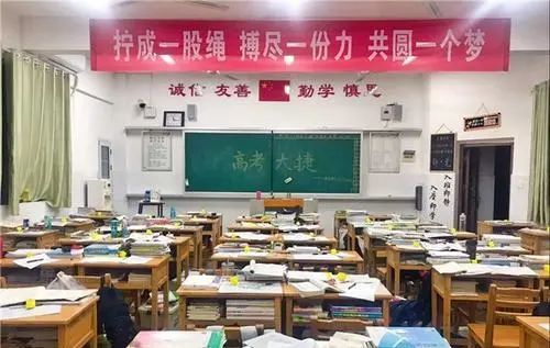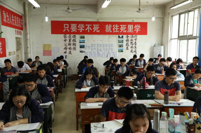 高考进入倒计时教室贴横幅 只要学不死就往死里学 高考 心理压力 教室