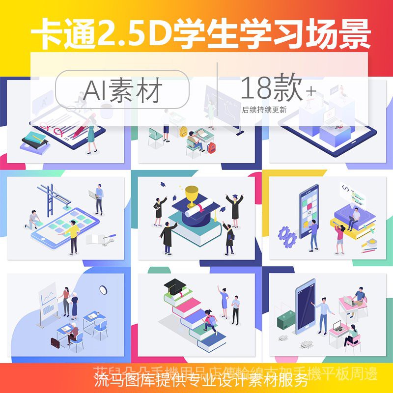 卡通2 5d學生生活學習人物辦公開會教師授課場景ai矢量設計素材 pjdm