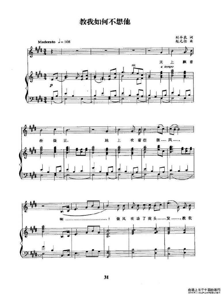 教我如何不想她 刘半农词赵元任曲 合唱谱 乐谱网