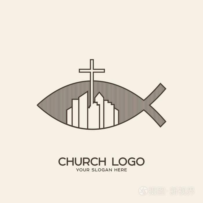 教会的标志 基督教的象征 十字架和市鱼符号的背景上插画 正版商用图片02223t 摄图新视界