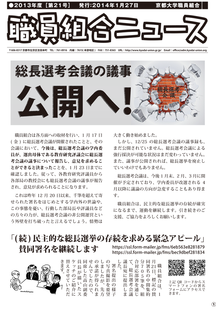 京都大学職員組合 京都大学総長選考会議 公開させる 全国大学高専教職員組合ホームページ 全大教hp
