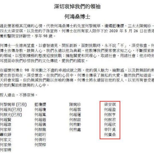 何鸿燊去世后 赌王家族发布两次讣告 其中略有差别 信息量挺大 梁安琪 何超琼 何东 网易订阅
