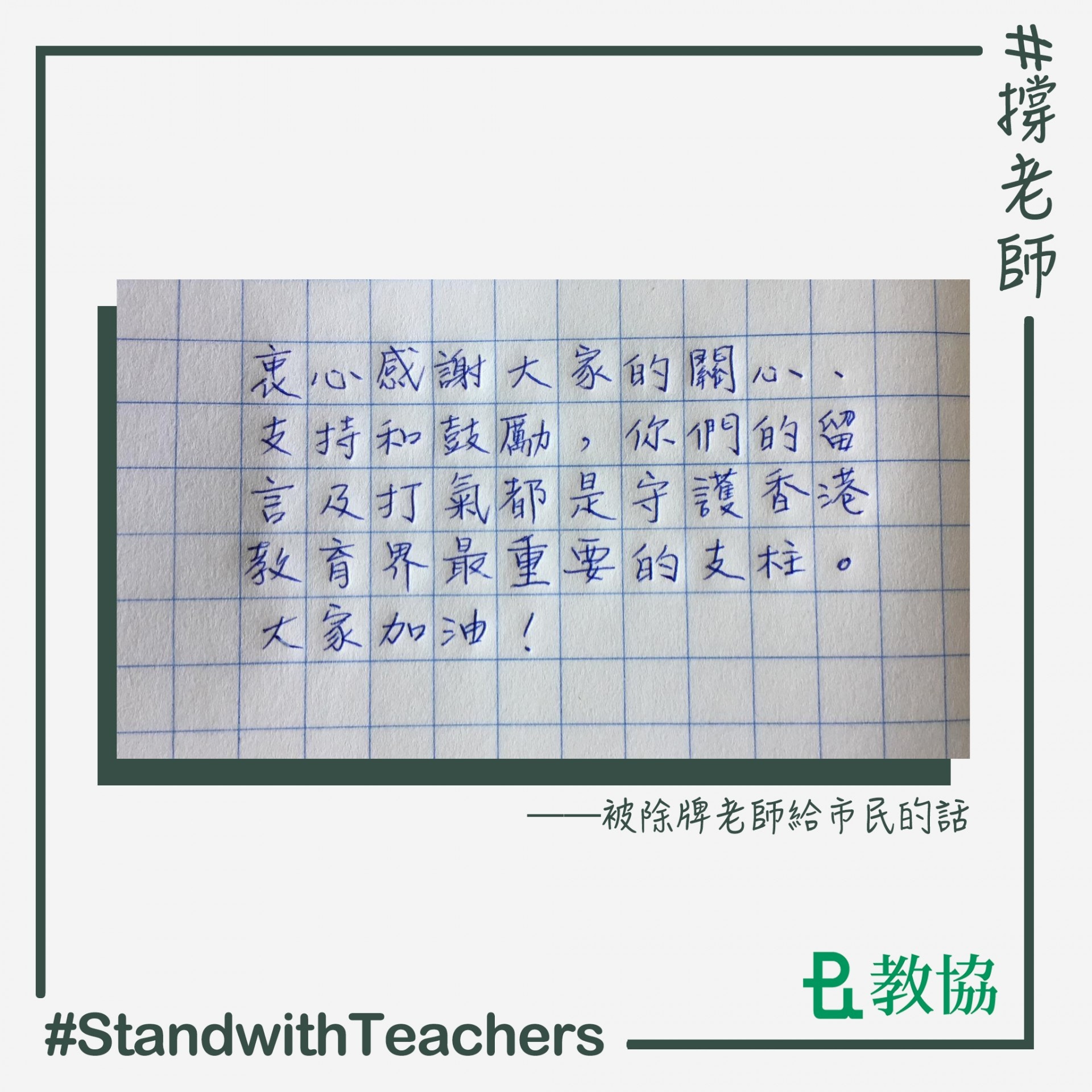 遭釘牌宣道教師親筆寫感言謝市民打氣 是守護教育界的支柱 香港01 社會新聞