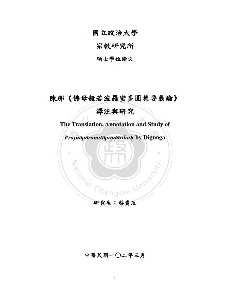蔡貴玫 陳那 佛母般若波羅蜜多圓集要義論 譯注與研究 佛光大學碩士論文2013