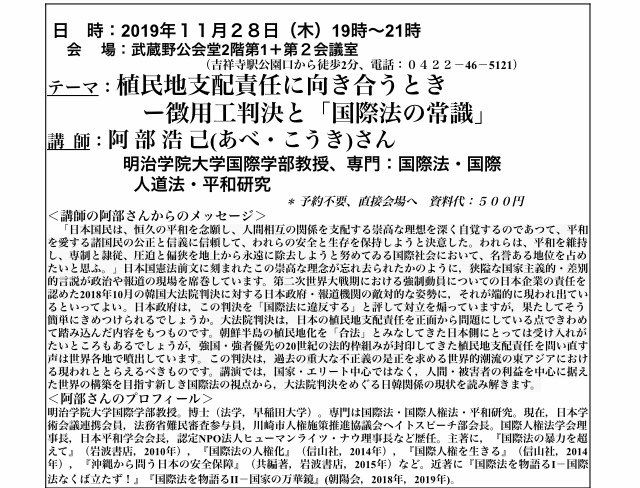 朝鮮半島の今を知る 32 徴用工問題と国際法 阿部浩己 明治学院大学教授 2019 9 5