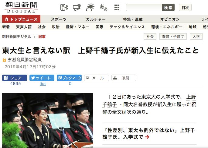 あのスピーチ 空気を読んでいたんですか 女性差別と闘う上野千鶴子 東大名誉教授 空気は 読まない 4 東京新聞 tokyo web