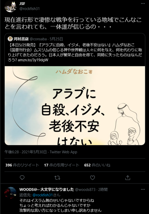 飯山陽 dr akari iiyama イスラム教再考 4刷決定 on twitter イスラム教は論理の構造上ムスリムaが bは正しい ムスリムではない と論じたところでbは aは正しいムスリムではない といくらでも論破できるのであり 人間レベルでは aもbも神と終末を信じている以上