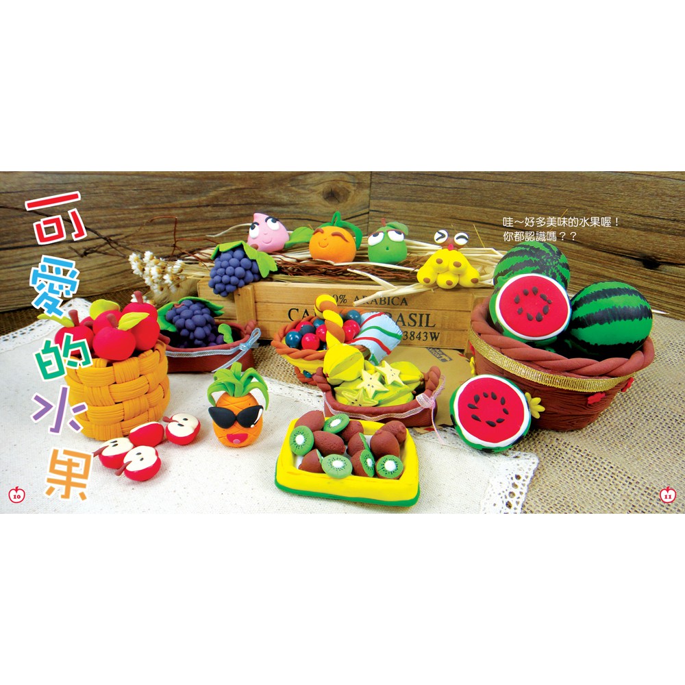 輕黏土好好玩 水果娃娃總動員 盒裝版 內含6色超輕黏土 黏土工具4件組 20款可愛水果造型黏土教學 2種遊戲紙盤