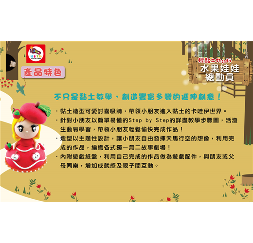 水果娃娃總動員 盒裝版 new 內附6色3q超輕黏土 共180g 1本黏土教學書 2款遊戲紙盤 黏土工具4件組