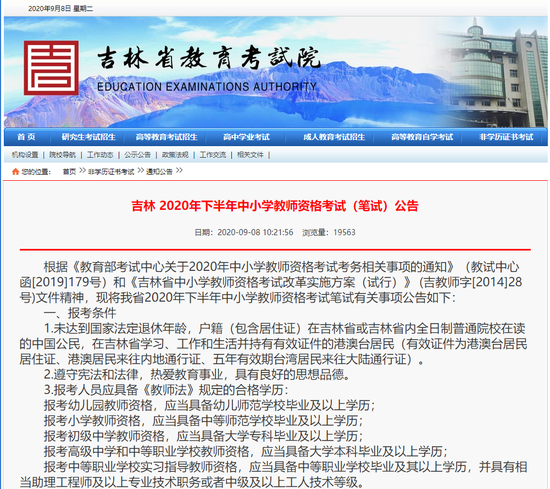 2020下半年江苏中小学教师资格考试笔试报名公告 中国教师资格网