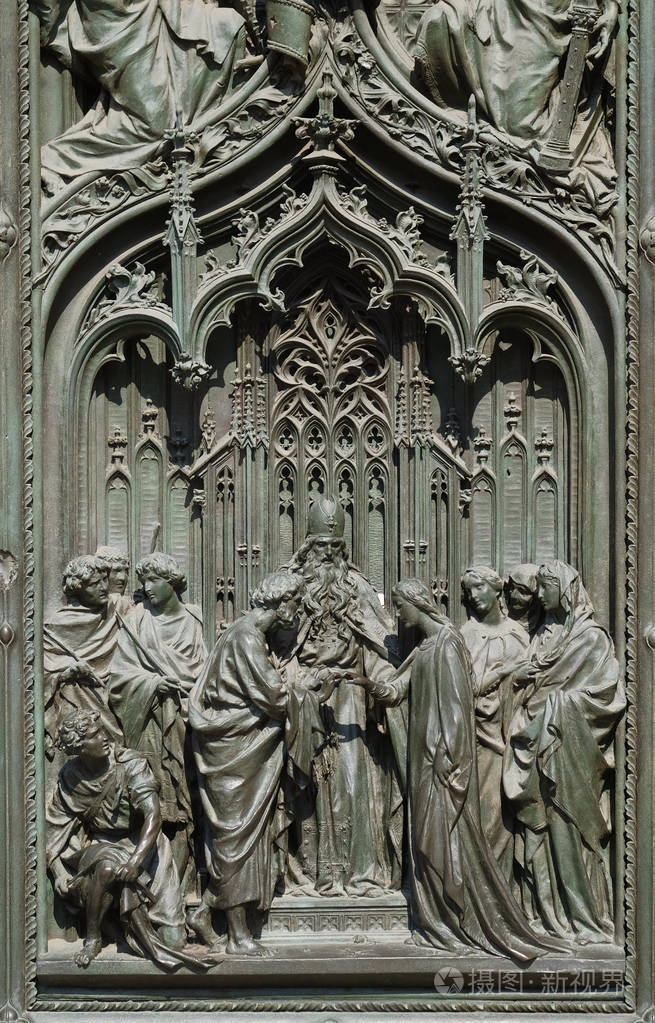 圣母玛利亚的婚姻 米兰大教堂主铜门的细节 圣玛 新生的米兰 伦巴第意大利照片 正版商用图片150gf5 摄图新视界
