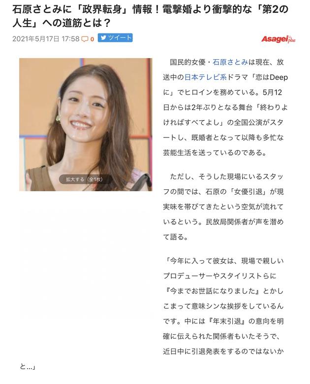 石原里美感染新冠 目前正在隔离观察中 日本明星资讯 新闻吧