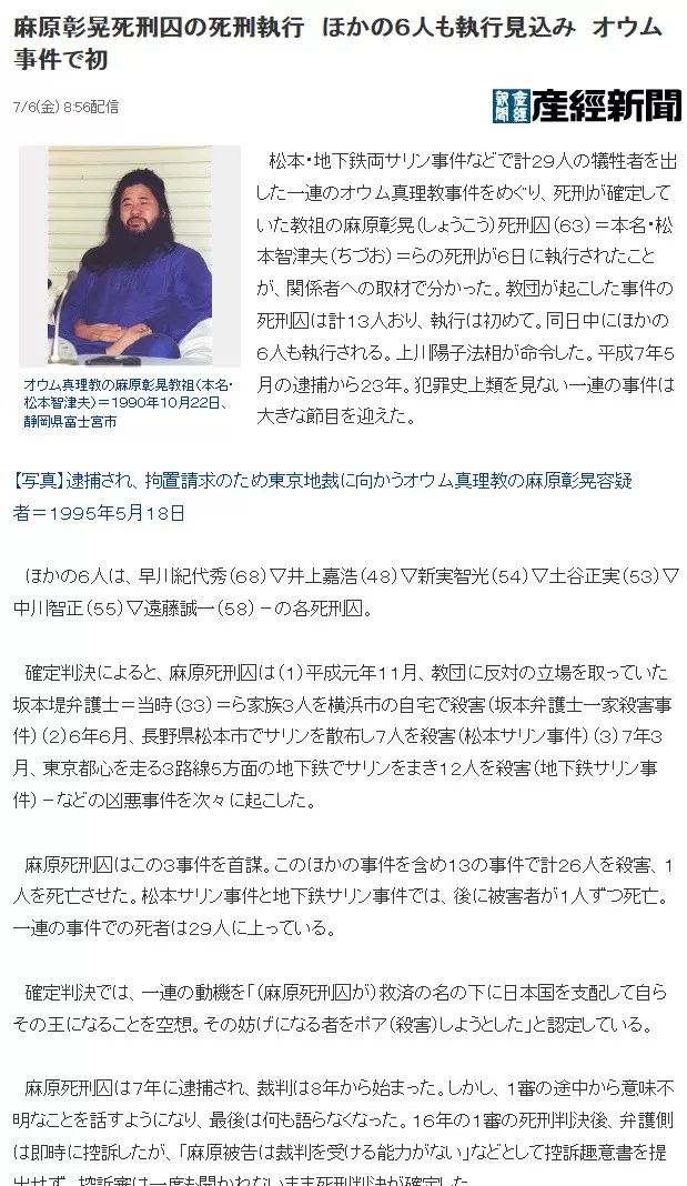 奥姆真理教6名囚犯被执行死刑 德国之声来自德国介绍德国 dw 26 07 2018